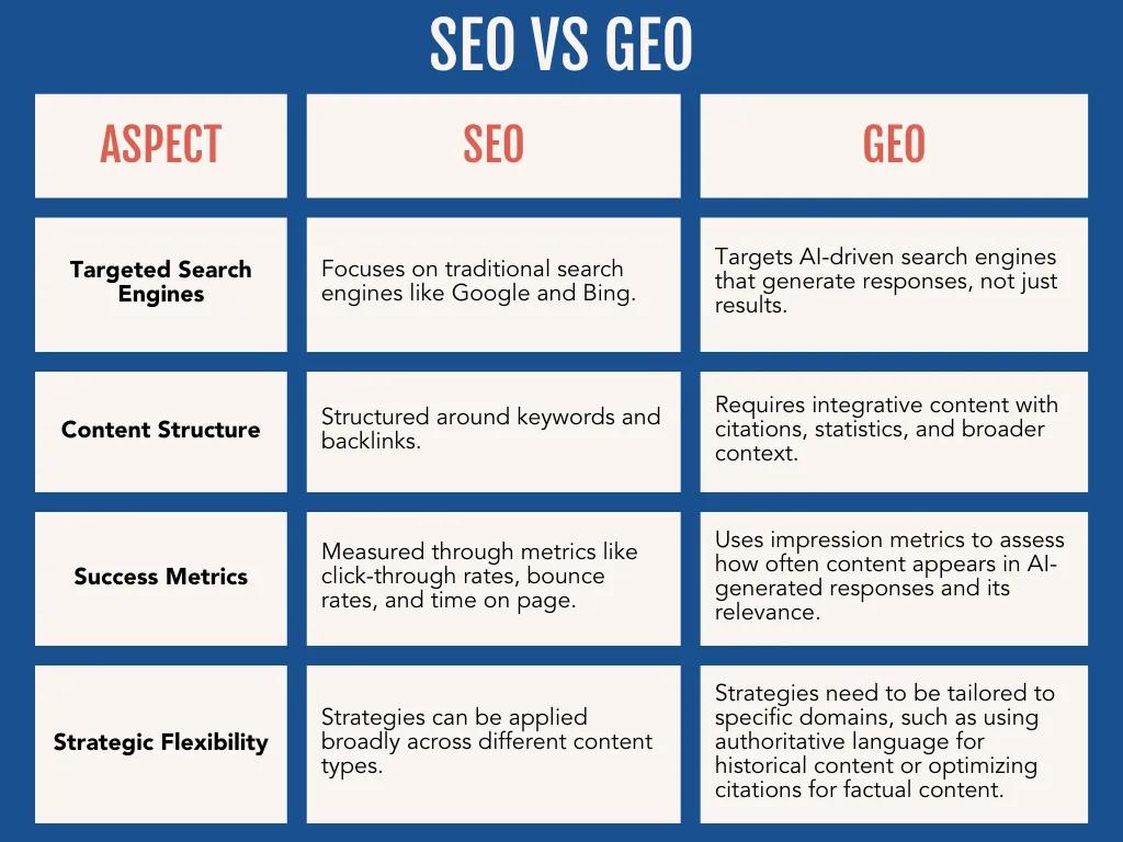 - GEO vs SEO Differences